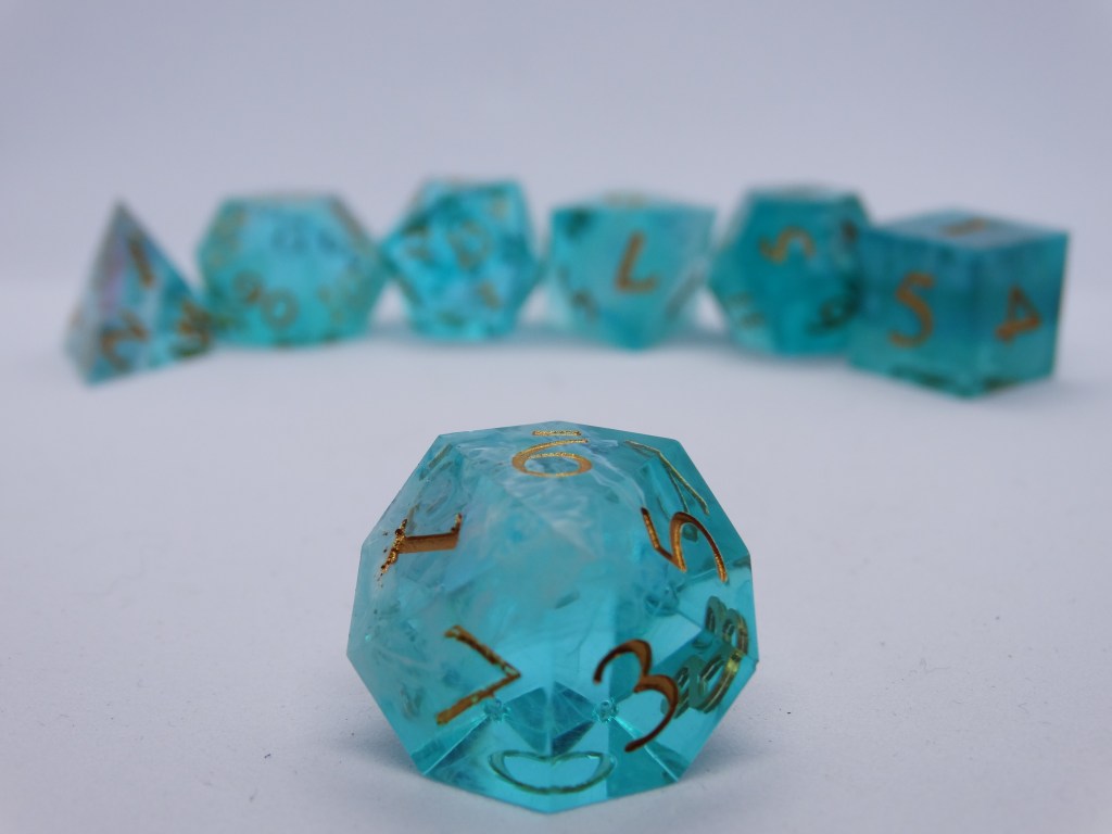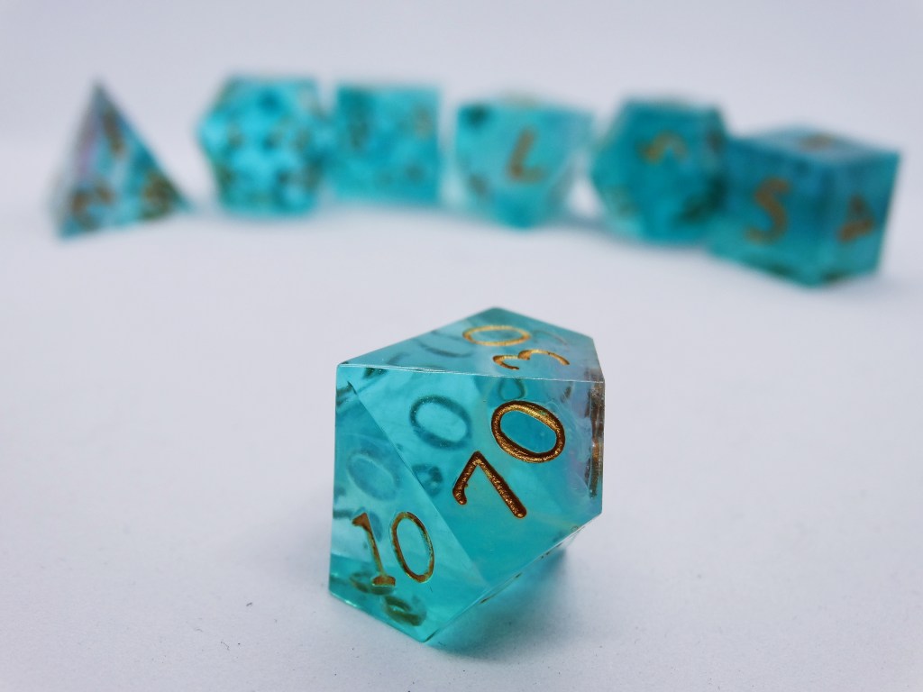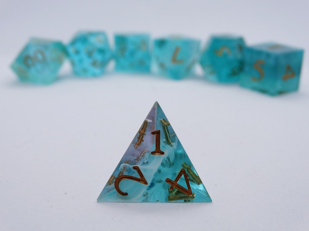 - Gocce randomiche di colore bianco e petrolio per dare quell’effetto fumo che si può notare all’interno di alcuni dadi.