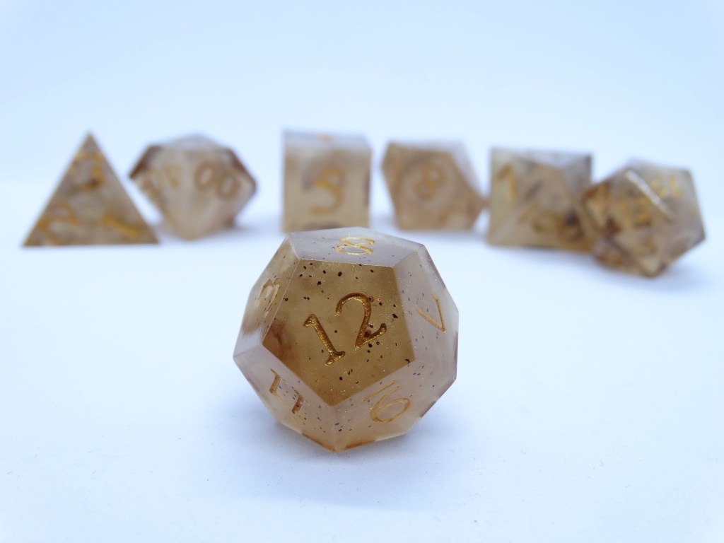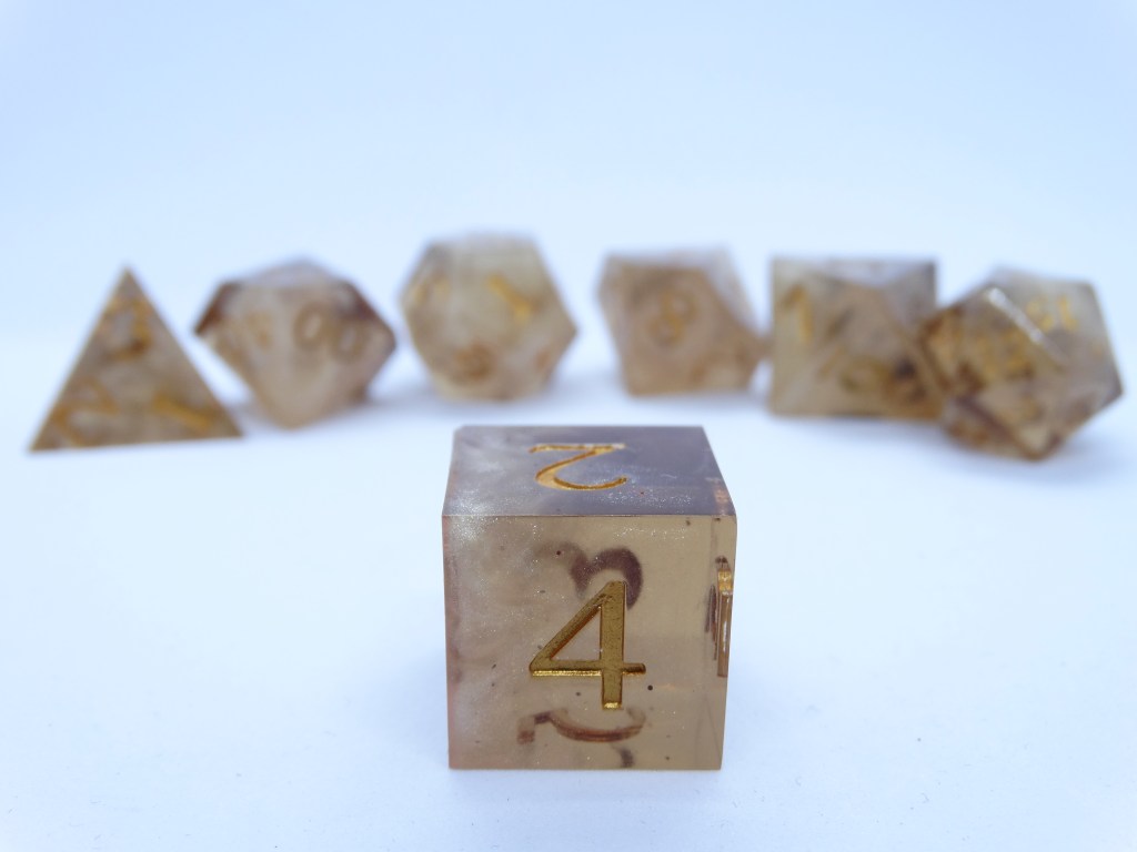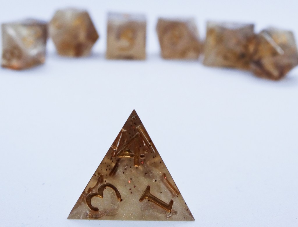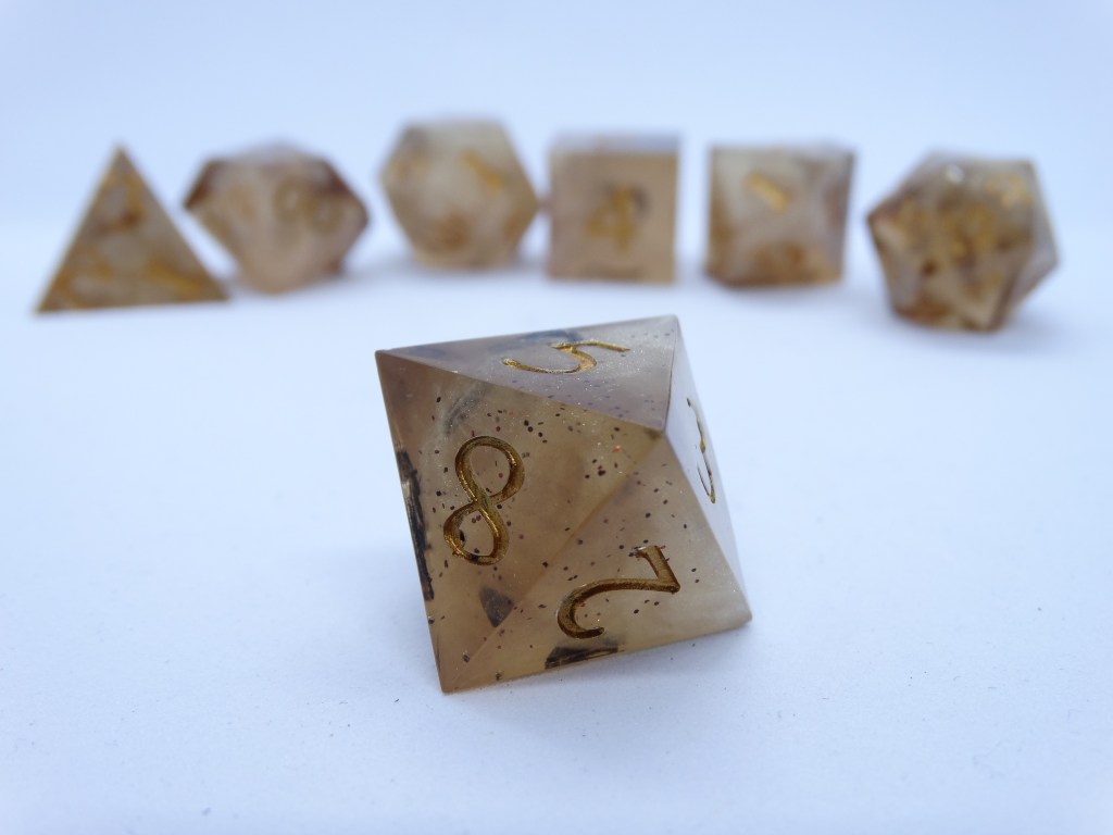 - Glitter in polvere iridescenti con una base di marrone scuro.